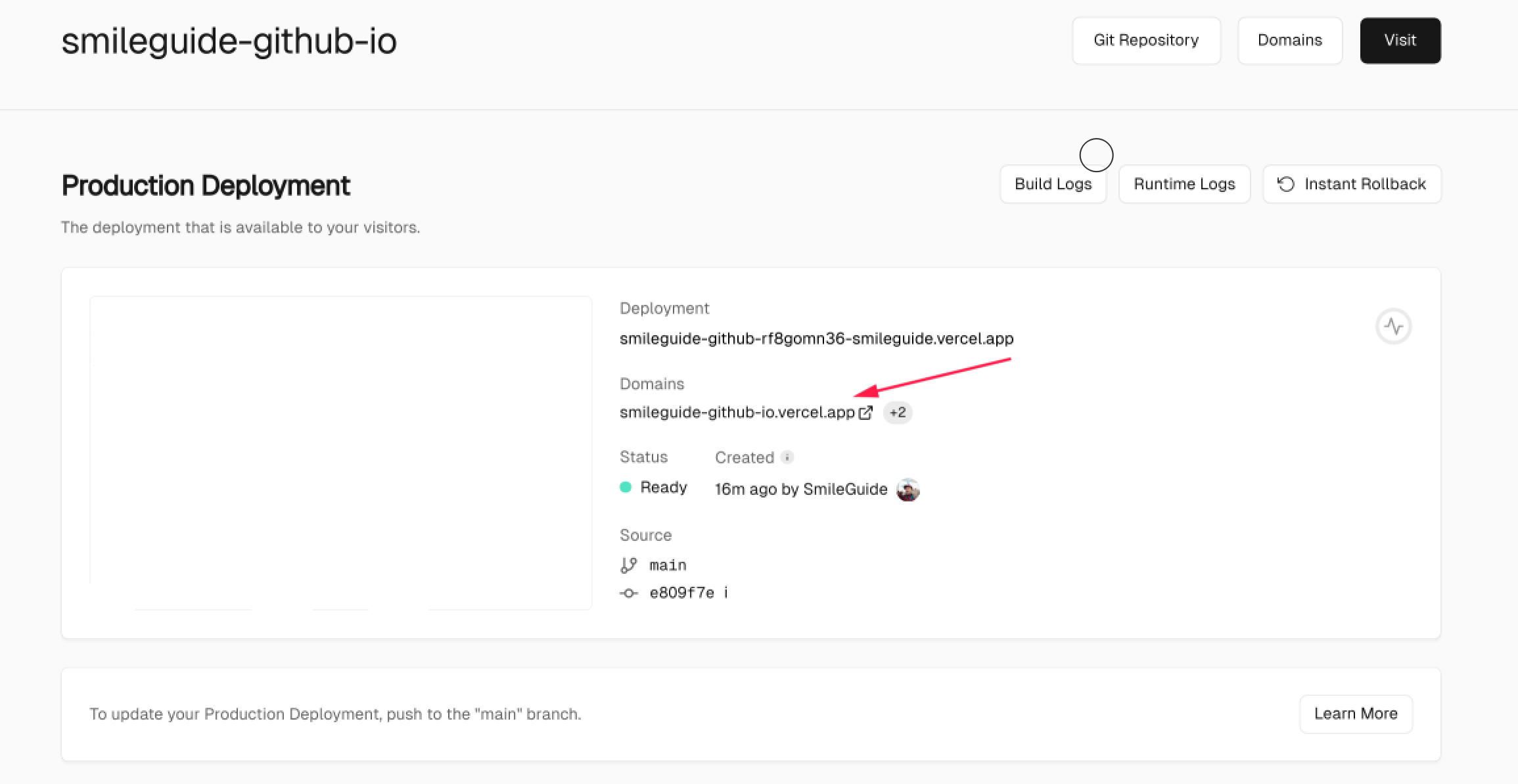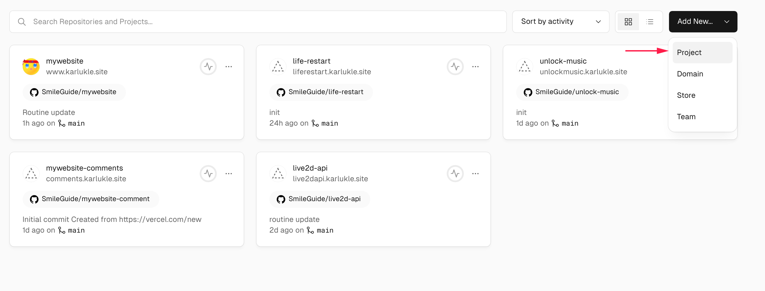 至此,基本的 Vercel 部署已经完成。但如果想通过 Vercel 授予的二级域名访问网站,可能需要魔法.:dog: