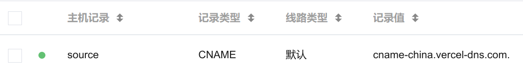 | source | CNAME | 默认 | cname.vercel-dns.com. |