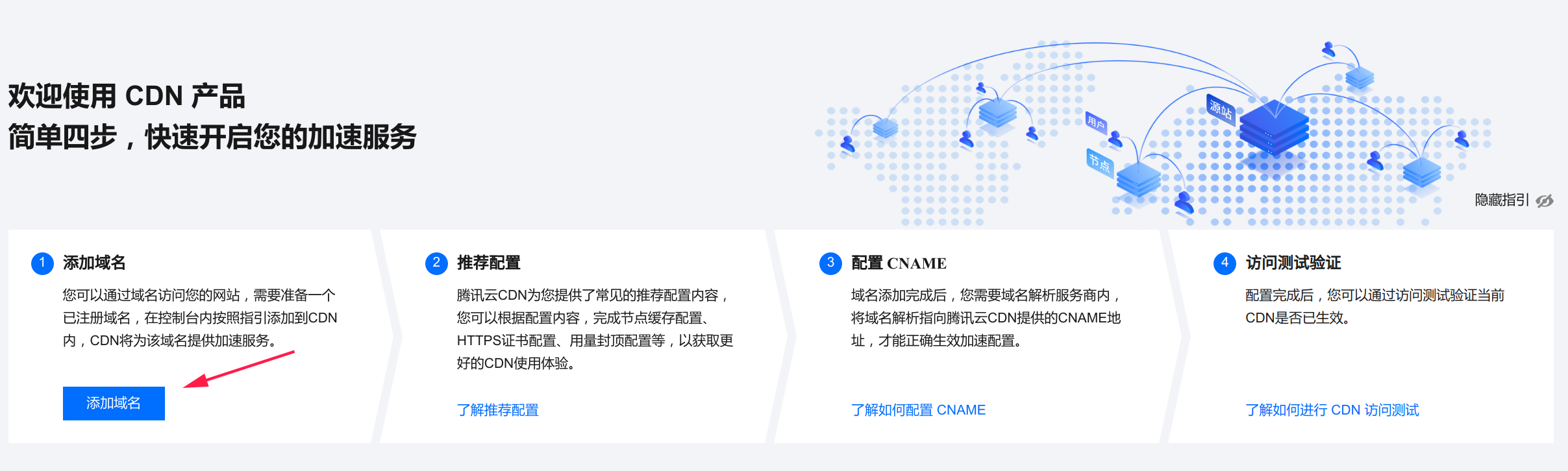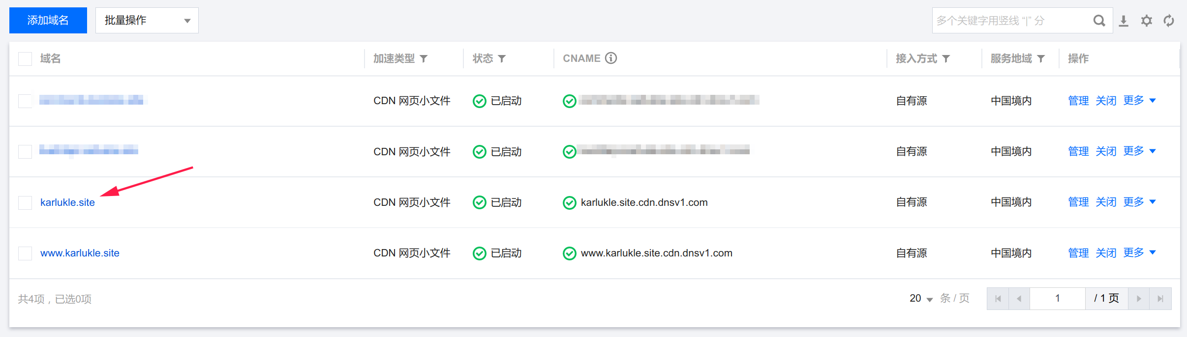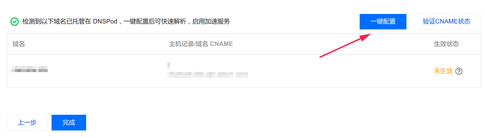 点击一键配置,CDN的CNAME解析记录就会自动添加