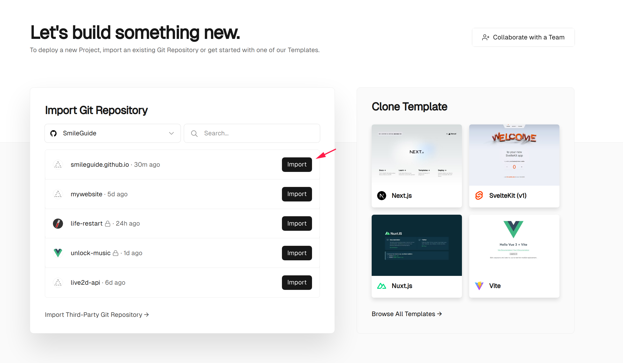 如果你没有域名,慎用 Vercel,因为 Vercel 被GFW污染,不用自己的域名做解析就无法访问部署好的网站。